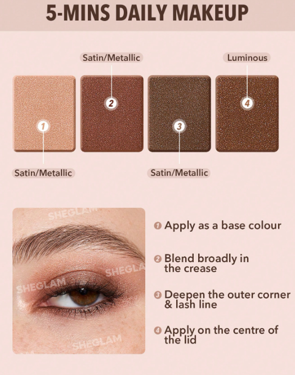 Paleta 4 sombras para ojos, 2 mate y 2 metalicos