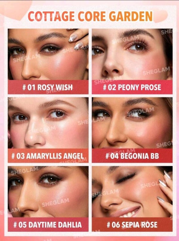 Paleta de rubores en crema con 6 tonalidades frías.