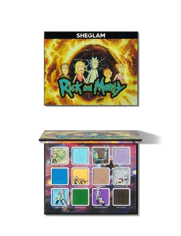 Paleta de sombras con 12 tonalidades diferentes, de la colección de Rick y Morty